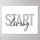 Design typographique moderne, simple et minimal d'un dicton "Commencer à vivre" dans les tons gris. Cool, urbain, art vectoriel graphique tendance avec typographie manuscrite.