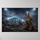 Poster UFO Alien Archeologist Digging Site Paranormal