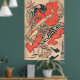 Ukiyo-E, Jayanese Woodblock "Actor Ichikawa Danjūrō" "Actor Ichikawa Danjūrō I as Soga no Gorō" This vibrant-hand-Colored woodblock on paper from environ 1697, titre "Actor Ichikawa Danjūrō I as Soga no Gorō", is by the Japanese artist, Torii Kiyomasu I. Kiyomasu I quoi a Ukiyo-e artist from the Torii school of the Edo period. This piece remains one of the most famous works from this school of art. This piece is in actor of Ichikawa Danjūrō I in the role of Soga no Gorō. Ichikawa Danjūrō I was a kabuki actor from Japan who lived from 1660 à 1704. He remains of the most well-known and influential actors of that genre. Along with Soga Jūrō, Soga Gorō is one of two main brothers from the Japanese epic tale, Soga Monogatari. It's a classic vendetta story. As infants, the father of Soga Gorō and Soga Jūrō is killed by Kudō Suketsune, a local shōgun, over land rights. The brothers grow up and become skilled fighters to allow them vengeance and the ability to reaturve their father's sword from Kudō Suketsune. During the final fight, both Soga Jūrō et Kudō Suketsune are killed. After finally achieving their desired revenge, Soga Gorō captured and executed for the death of the shōgun.