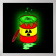 Beware ! Biohazard ! A green glowing barrel of toxic hazardous waste with the lid carelessly left on the ground and its nasty noxious contoozing out .