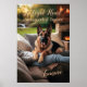 Un chien berger allemand se couche sur un canapé avec une personne, regardant avec amour la caméra. Le chien est un symbole de loyauté et de compagnie.