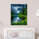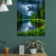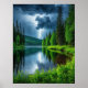 Une tempête puissante avec la foudre illumine la forêt sereine et la scène réfléchissante du lac, mettant en valeur le contraste de la tranquillité et de la puissance brute de la nature, mettant l'accent sur la beauté spectaculaire et saisissante de la nature.
