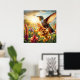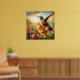 Une peinture vibrante capturant un colibri délicatement perché sur une fleur colorée, ses ailes irisées chatoyantes à la lumière du soleil.