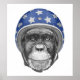 Ce dessin présente le portrait d'un chimpanzé dans un casque de moto patriotique.