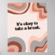 Oeuvre avec un design abstrait apaisant et un message rassurant : "On peut faire une pause." Un complément parfait à tout espace qui promeut la pleine conscience et la relaxation. Poster téléchargeable.
