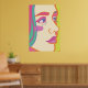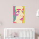 Portrait fictif d'une femme au maquillage lumineux, aux couleurs vives dans un style moderne.