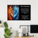 Une fusion de feu et de glace est dépeinte dans cette représentation artistique de deux mains tendues. La main bleue glacée, tourbillonnant de gel et de glace, symbolise la froideur et la clarté. La main orange et rouge vif, tourbillonnant de flammes et de fumée, symbolise la chaleur et la passion. L'arrière - plan est un dégradé mêlant des tons sombres et fumés qui met en évidence le contraste. Les effets de lumière mettent l'accent sur le thème élémentaire. "Fire And Ice" est au sommet d'une typographie audacieuse et moderne.