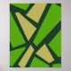 Cette composition abstraite présente un agencement en mosaïque de formes polygonales irrégulières, principalement dans les tons terreux de terre verte et jaune foncé. Chaque segment est entouré de bordures vert foncé, créant un sentiment de séparation et de rythme à travers la conception. L'interaction entre les angles pointus et la géométrie asymétrique évoque un sentiment de fragmentation contrôlée. Certaines formes de terre jaune foncé ressemblent à des trapézoïdes et des parallélogrammes, ajoutant des sous-tons architecturaux au visuel. L'esthétique globale est à la fois ancrée et dynamique, adaptée aux contextes de design moderne qui valorisent la texture, la profondeur et l'abstraction géométrique.