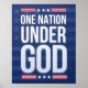 Montrez votre dévotion à Dieu et au pays avec ce badge patriotique avec les mots en bleu et blanc, "Une nation sous Dieu". Le design est accentué par des étoiles blanches et des rayures rouges.