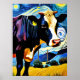 Poster Une vache dans la nuit étoilée