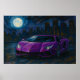 This painting merges high-performance automotive design with cinematic nocturnal ambiance, evoking themes of power, solitude, and aspiration. The rich purples and deep blues create a dramatic contrast, while the golden emblem and subtle reflections add a touch of luxury and mystique. Perfect for collectors drawn to modern elegance and urban symbolism, “Moonlit Velocity” is a visual anthem of motion suspended in time.