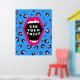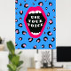Utilise ta voix ! Parle, même si ta voix tremble. arrière - plan Empreinte de léopard en bleu et rose présente une bouche rose vif criant.