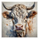 Une vache à l'aquarelle détaillée aux yeux expressifs est représentée contre un arrière - plan doux et flou. Les couleurs naturelles rehaussent l'aspect vivant.