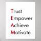 Insistez sur les valeurs fondamentales du travail d'équipe avec ce signe "Trust, Empower, Achieve, Motivate" de The Arty Apples. Parfait pour tout milieu de travail ou d'équipe, ce panneau met en évidence les principes clés qui motivent le succès et la collaboration. Affichez-le dans votre bureau afin d'inspirer confiance, autonomisation, réussite et motivation aux membres de votre équipe."