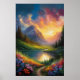 Découvrez l'enchantement d'une vallée ensoleillée, chef-d'oeuvre de l'art de la nature. Alors que le soleil plonge gracieusement sous l'horizon, sa chaude lueur domine la vallée, illuminant une tapisserie de fleurs colorées qui tapissent le sol. Des montagnes majestueuses se dressent au loin, leurs pics peints de teintes de crépuscule. Immergez-vous dans cette vue panoramique, où l'harmonie des fleurs vibrantes et des sommets imposants crée une scène d'une beauté sans pareil.