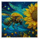 Poster Van Gogh Style Bee & Sunflower