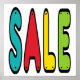 La conception de la vente comporte de grandes lettres dans différentes couleurs "cloué sur" au panneau. Pour un panneau "Vente" clair et lumineux.