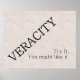 Si vous aviez une ténacité tenace pour la vérité, alors obtenez cette Veracité. Essayez-le, le slogan You Might Like It sur les t-shirts, les sweatshirts, les autocollants de pare-chocs et d'autres articles. Définissez-le. Attendez-vous. Montrez au monde qu'ils pourraient l'apprécier s'ils l'essayaient.