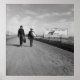 Deux personnes marchant le long de la route, se dirigeant vers Los Angeles, Californie, près d'un panneau d'affichage qui dit "La prochaine fois, essayez le train. Détendez-vous." Photo de Dorothea Lange, mars 1937.