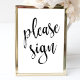 Un panneau de mariage élégant et moderne, avec le texte "Veuillez signer" dans une police de caractère script extrovertie, la texture de pinceau ajoute une sensation spontanée et ludique. La couleur de fond peut être personnalisée selon vos besoins et préférences, veuillez me contacter si vous avez une demande spéciale.