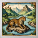 Un léopard à la représentation abstraite, aux accents dorés et noirs, dans un décor d'inspiration médiévale.