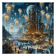 Poster Ville ancienne futuriste Steampunk avec méduses