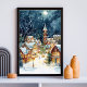 Illustration de la ville de Noël dans la neige avec ciel nocturne en aquarelle