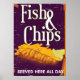 Poster de poisson vintage et frites, affiche classique de la cuisine britannique. affiche ancienne de poisson et de puce.