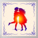 Vintage Dancing Couple violet foncé silhouette antique style danser fille et garçon sur l'ivoire tendre arrière - plan et cadre floral