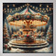 Affiche de Noël. Joli aquarelle d'aquarelle illustrant un manège vintage à l'ancienne tournent autour couvert de neige lors d'une nuit d'hiver nostalgique.