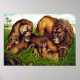 Un tableau vintage d'une famille de lions et de lionnes couchées ensemble