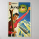 Affiche de voyage Jungfrau Suisse - affiche de promo touristique suisse. La Jungfrau, située à 4 158 mètres, est l'un des principaux sommets des Alpes bernoises, entre le canton nord de Berne et le canton sud du Valais, à mi-chemin entre Interlaken et Fiesch.