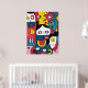 Illustration de doodle pop art abstrait, audacieuse et colorée, avec des visages humains expressifs et des formes ludiques dans une palette vibrante de rouge, jaune, bleu, noir et blanc. Cette oeuvre mêle le style urbain de l'art urbain à l'expressionnisme abstrait contemporain, ce qui la rend parfaite pour l'art mural, les affiches, les estampes de mode et les accessoires créatifs. Un design amusant et artistique qui capte à la fois les pop vibes modernes et le charme des doodles.
