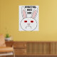 Cette affiche présente le triste visage d'un lapin blanc. Ce lapin a une grosse fronde sur son visage parce qu'il est un lapin de laboratoire qui a fait l'objet de tests cosmétiques. Les blancs de ses yeux sont rouges et enflés. Le design a été conçu pour attirer l'attention sur les souffrances inutiles causées par les tests de cosmétiques sur les animaux. Le texte noir et gras entre les oreilles du lapin dit "la vivisection doit s'arrêter". L'affiche est disponible en plusieurs tailles différentes, dont la plus grande est montrée ici. Mettez-le à la maison ou au travail et soutenez les droits des animaux.