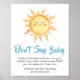 Faites de votre événement spécial avec ce Baby shower Sunshine avec notre joli et mignon imprimé Don't Say Baby Sign avec adorable thème de Baby shower Sonshine. Téléchargez, personnalisez et créez des souvenirs durables avec cette touche parfaite pour votre fête joyeuse ! BS1053 B