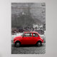 Une petite voiture rouge photographiée dans une rue étroite à Rome, Italie.