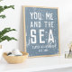 Un cadeau extraordinaire pour le ménage ou un ajout personnalisé cool à votre logement côtier, notre imprimé personnalisé avec cadre "You, Me and the Sea" en typographie de blocs sur un arrière - plan bleu poussiéreux en détresse. Personnalisez avec votre nom de famille et l'année de la maison de plage établie en lettres correspondantes au bas.