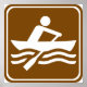 Signal routier et routier de style international qui conseille les installations récréatives, plus particulièrement l'aviron.