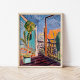 Vue depuis la fenêtre du Studio (avant 1925) est une oeuvre originale du peintre expressionniste judéo-suédois Isaac Grünewald (1889-1946). L'oeuvre capture un paysage urbain abstrait et dynamique, vu depuis la fenêtre du studio de l'artiste. Le style expressionniste de Grünewald utilise des couleurs audacieuses et non naturalistes et des brosses dynamiques pour transmettre l’atmosphère émotionnelle de la scène. Le tableau reflète l'énergie de la ville, avec des formes géométriques et organiques qui se mélangent pour représenter l'environnement urbain d'une manière très stylisée. L’oeuvre évoque le lien de l’artiste avec son environnement tout en offrant une interprétation moderniste de la vie urbaine. Utilisez les outils de conception pour ajouter du texte personnalisé ou personnaliser l'image.