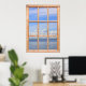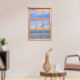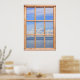 Laissez-vous bercer par la vue sur l'océan et laissez-vous tenter par votre imagination. Cette scène paisible encadrée par une fausse affiche de la vue sur les fenêtres montre la mer calme avec la terre au-delà, et un beau ciel bleu au-dessus. Cette lumière crée une lumière à la surface de l'océan.