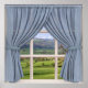 Paysage paisible avec une vallée verdoyante et des collines ondoyantes? Il est juste là devant votre fausse fenêtre. Il doit être un concurrent pour la plus belle vue à voir à travers un cadre de fenêtre. De jolis rideaux à rayures bleus et blancs semi-clairs et une fenêtre à 9 volets blanche carré complètent l'illusion avec un effet 3D merveilleux. Au-delà se trouve une scène paisible de champs verts parsemés de moutons, et il y a même un petit cottage en chaume. Cette photo a été prise par moi (zazzle.com/scenefromawindow) sur place dans le ravissant Devonshire (Angleterre).