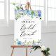 Aquarelle Blue Hydrangeas Affiche de bienvenue de brunch nuptiale. Symbole de bienvenue pour un déjeuner nuptial élégant et fantastique, avec hydrangées bleu et violet, pivoines, anémones et feuillage. Ce panneau d'accueil fleuri est parfait pour les fêtes de printemps et d'été.