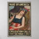 Weck Amerika auf! Civilization Calls ist ein Vintages Kriegsposter aus dem Jahr 1917. Zeigt eine Frau, die rot, weiß und blau schläft, mit den Worten Weckte Up America! über ihr.