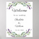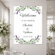 Greet your guests with this elegant Lavender Eucalyptus Wedding Welcome Sign. The design features a delicate watercolor arch of purple lavender blooms and soft green eucalyptus foliage against a crisp white background. This sign is perfect for directing family and friends at an outdoor summer garden ceremony.