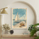 Capture the charm of the East Coast with this vintage Hamptons travel poster. Sailboats drift near a sunny dock while a picnic basket rests in the breeze perfect for lovers of classic Americana and summer nostalgia.