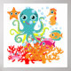 Our Welcome to the Ocean design is cute, fun, and colorful, great for kids who love the ocean and all the sea creatures it has to offer. Objets bleus octopus, sea horse, fish, starfish, and crab ! T-shirts d'Ocean animals, mugs, bags, cards, wall clocks, keepsakes, pillows, journals, and more !