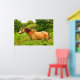 Un mignon poney de montagne souillé broutant dans une prairie estivale. Aquarelle. Pays de Galles.