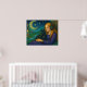 Cette charmante conception d'imaginaire représente une fille paisible aux cheveux dorés qui coule, portant un casque alors qu'elle tient doucement un chat noir avec un pendentif brillant. Derrière eux, un ciel nocturne rêveur avec une lune tourbillonnante et des étoiles projette une lueur magique sur des maisons pittoresques et des rivières sinueuses. Des tons riches de turquoise, de violet et d'or donnent à la scène une atmosphère chaleureuse et fantaisiste pleine de confort et d'émerveillement.