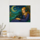 Poster Whimsical Girl with Black Cat Under Crescent Moon