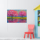 A symphony of spring unfolds in this impressionistic landscape, where blooming cherry blossoms shimmer in hues of pink, crimson, and violet. Their delicate forms stretch skyward, mirrored in the still waters below, creating a dreamlike duality. The golden sky—caught between sunrise and memory—casts a gentle glow across the meadow, where red and yellow wildflowers whisper in the breeze. Birds drift silently overhead, adding motion to the stillness, presence to the peace. This piece invites quiet reflection, evoking the fleeting beauty of light, nature, and time suspended.